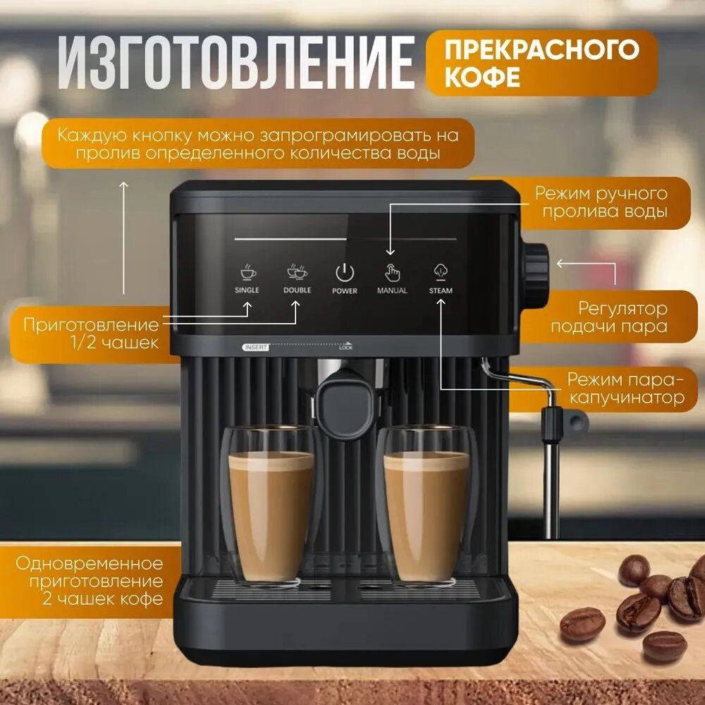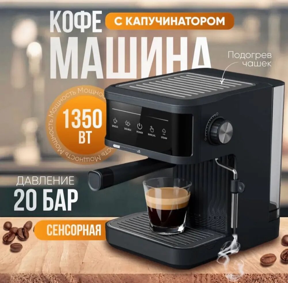 Кофемашина автоматическая, рожковая 20 бар, 1350вт с капучинатором информация: