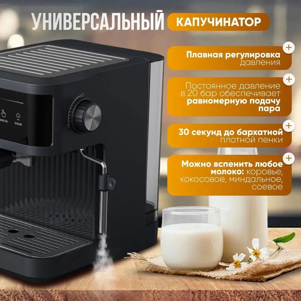 10 цен на Кофемашина автоматическая, рожковая 20 бар, 1350вт с капучинатором