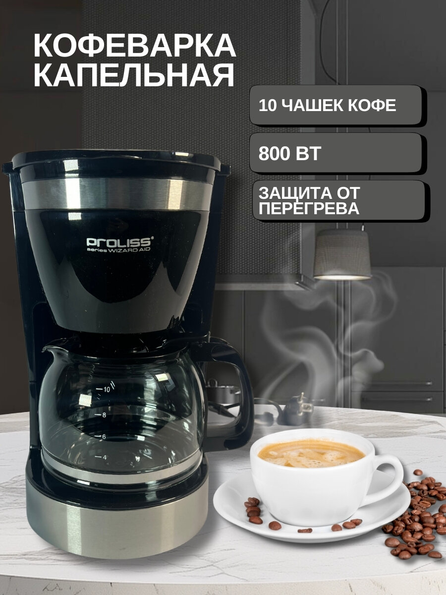 Отзывы на Кофеварка электрическая PROLISS, объем чаши 1л, съёмный фильтр, с функцией автоподдержания температуры