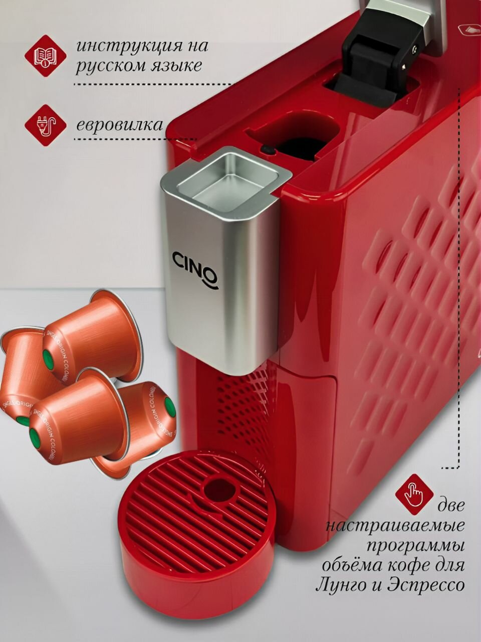 Кофемашина Nespresso Cino Maria, красная, 20 Бар, сенсорное управление информация: