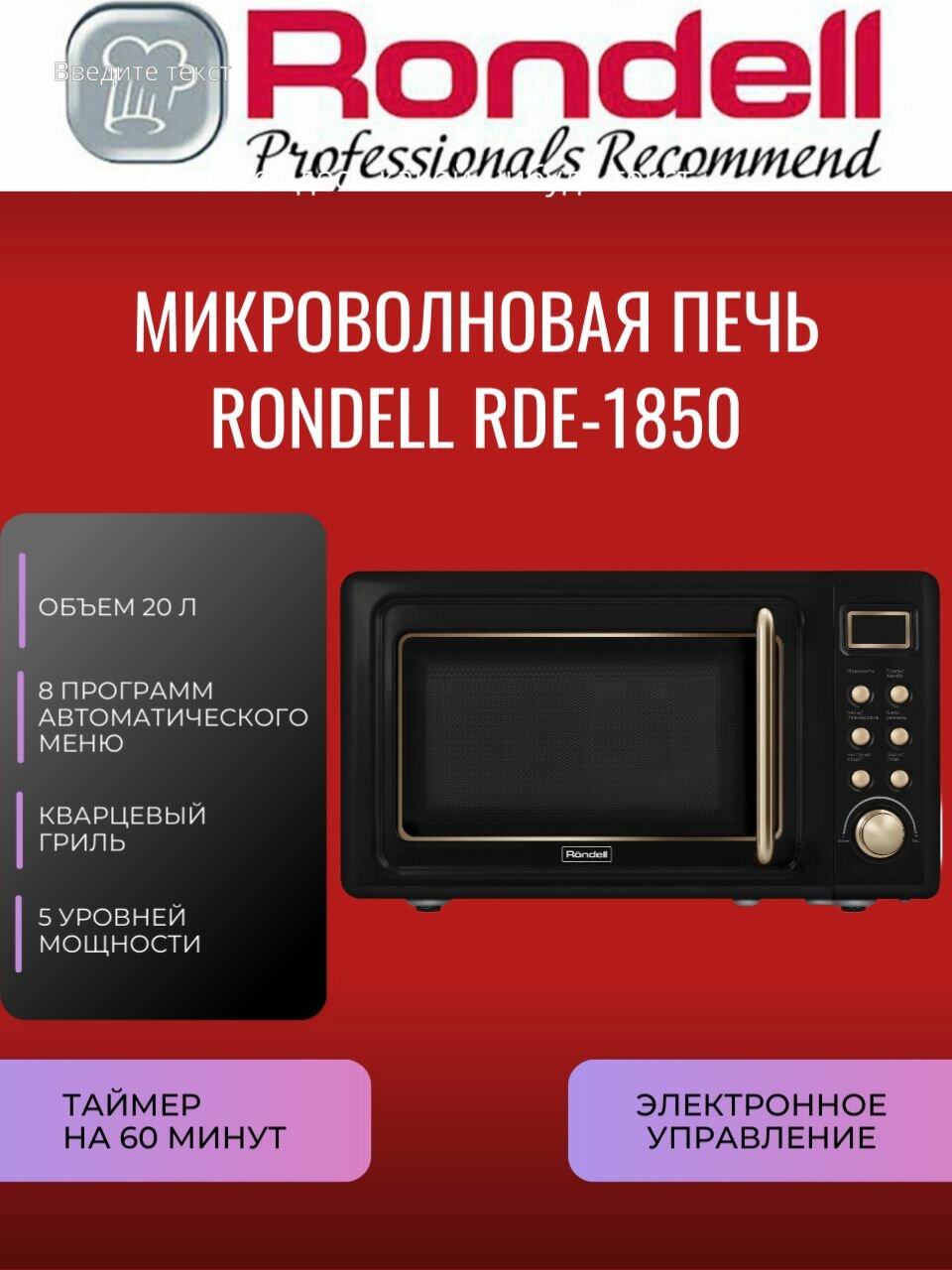 Микроволновая Печь RONDELL RDE-1850 черный информация: