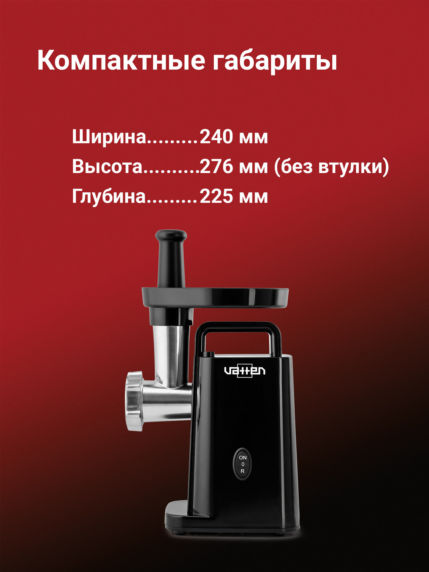 10 цен на Мясорубка 2 в 1 VATTEN VG25/800/N, комплект овощерезки, черная