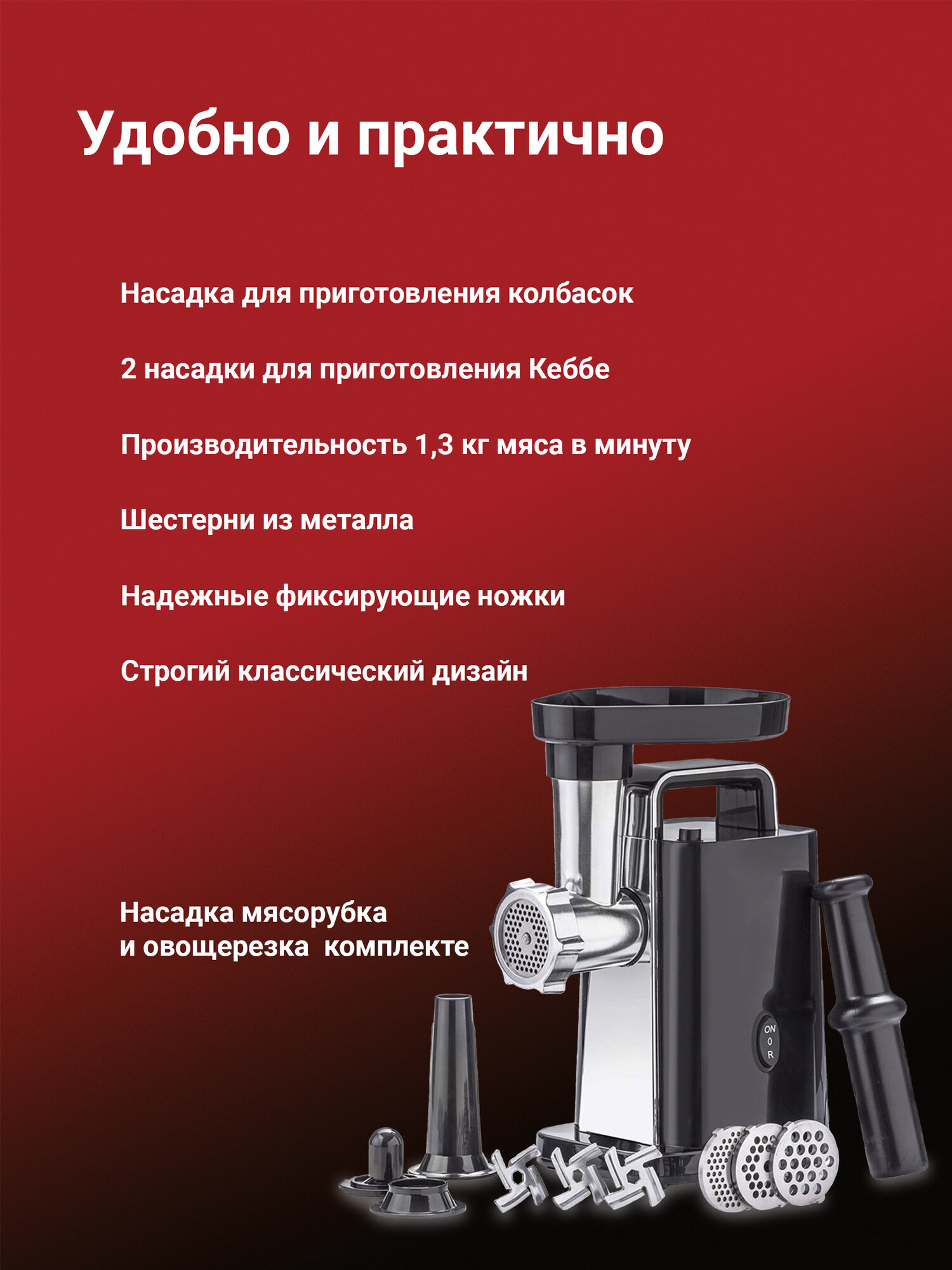 Мясорубка Аксион М321, 1500 Вт, реверс, защита двигателя, насадки для кеббе и колбас