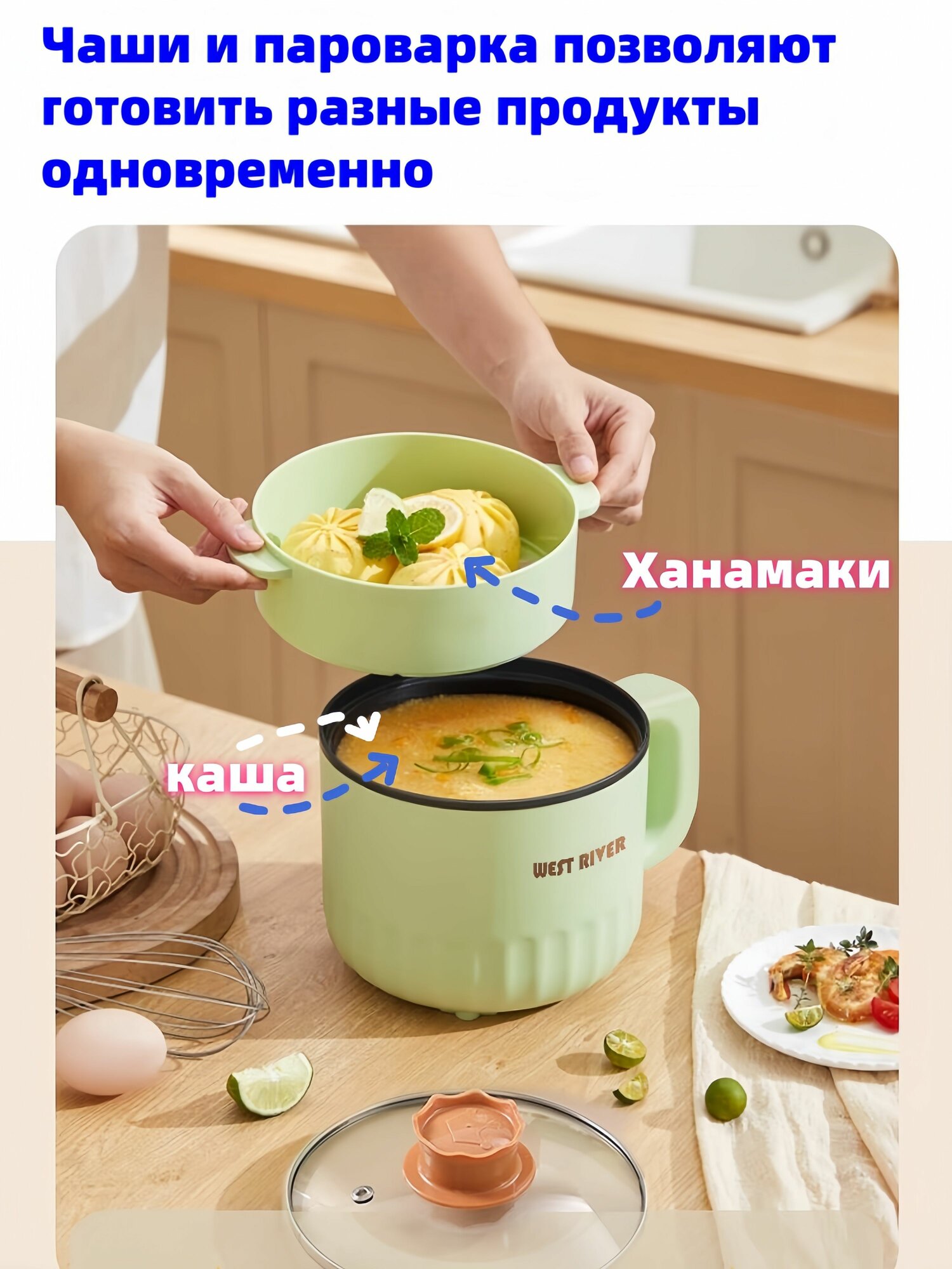 10 цен на Пароварка WJIECO, пластик, мощность 600Вт, 1 ярус, 1,8л, дисковый нагрев, 8 программ, салатовая