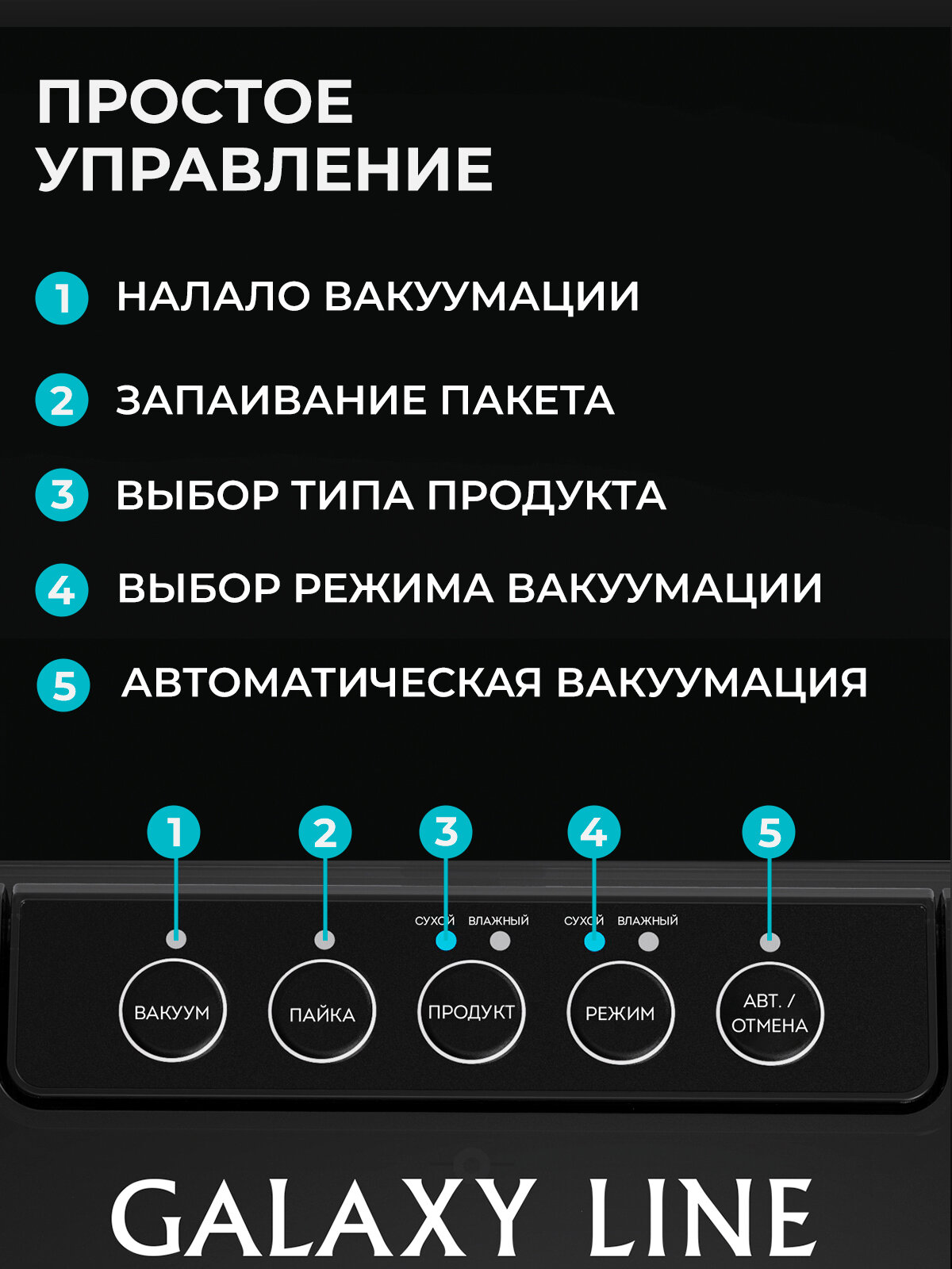 Вакуумный упаковщик GALAXY LINE GL2720, пластик, 130Вт, механический, черный информация: