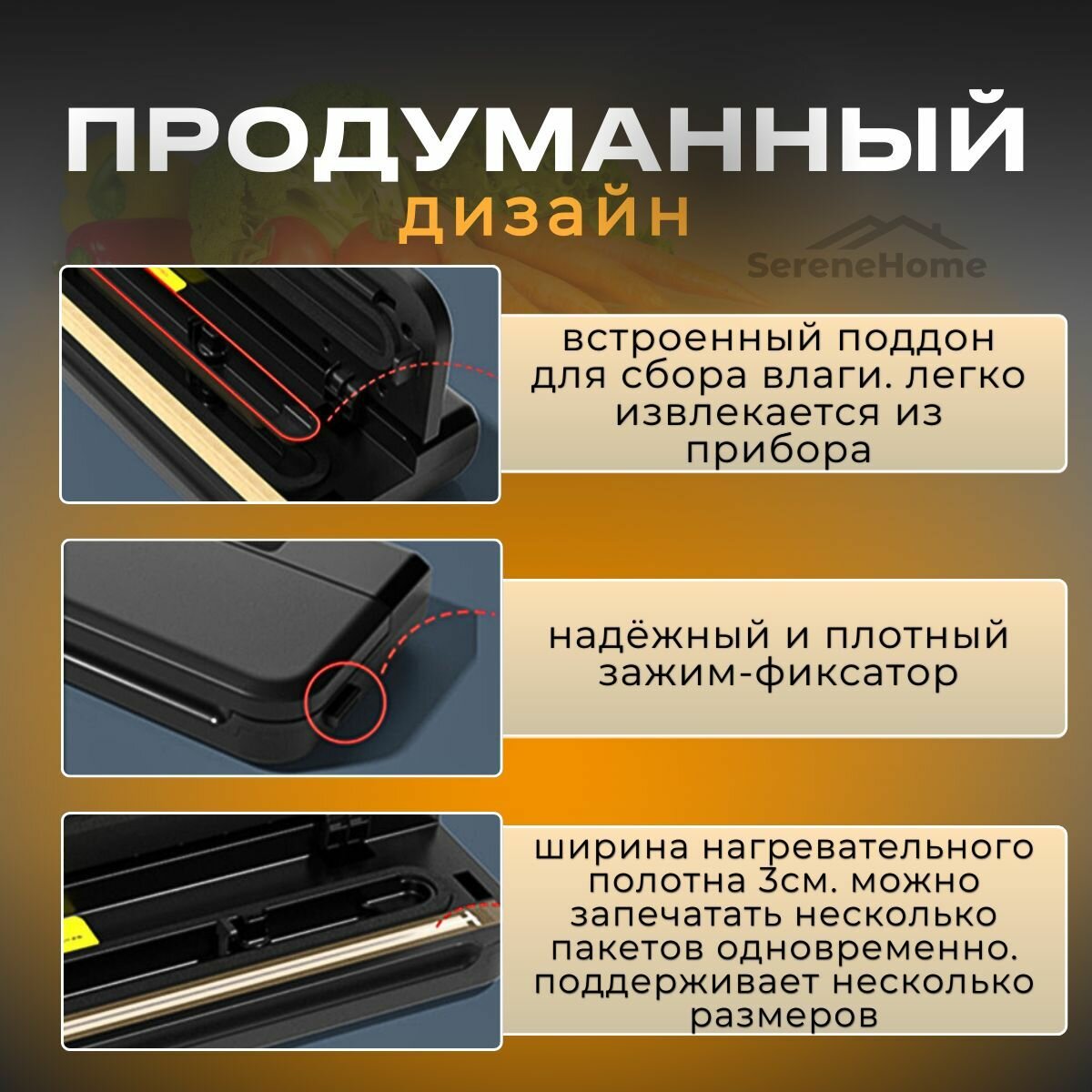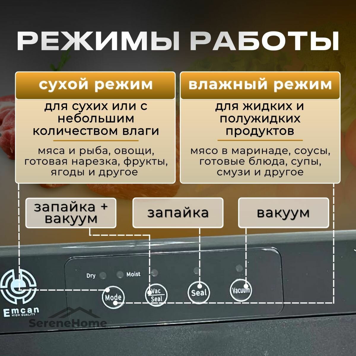 Вакууматор для продуктов, Вакуумный упаковщик для сухих и влажных продуктов, 65 кПа информация: