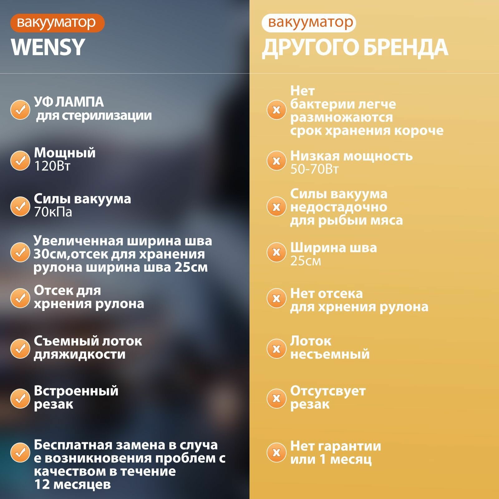 Характиристики этого товара не найдены!Отзывы на Вакуумный упаковщик Wensy, синий, 120Вт, 30л/мин, с резаком для пакетов