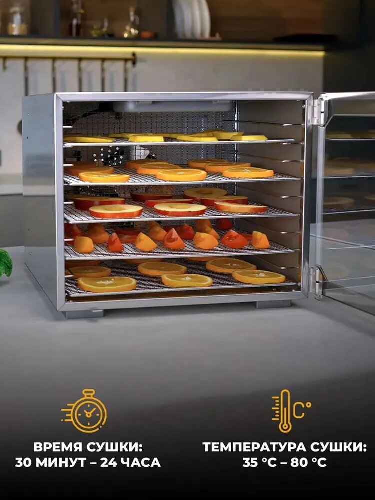 10 цен на Дегидратор OBERHOF Fruchttrockner C72/Электрическая сушилка овощей, фруктов, пастилы, зелень, мяса, для грибов/ 1000вт/ 10 поддонов/ Вместимость 10кг
