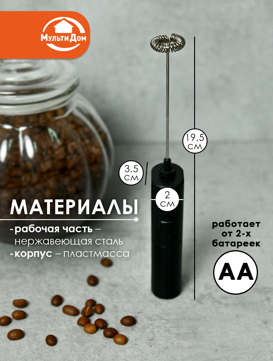 Электрический капучинатор Мультидом, нержавеющая сталь, пластик, 3.5x2x19.5 см информация: