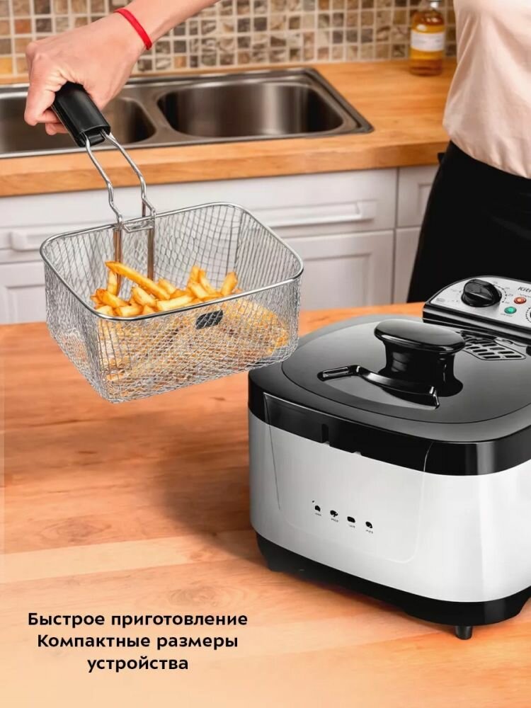 10 цен на Фритюрница Китфорт КТ-6239, электрическая, съёмная корзина, 2000Вт, белая