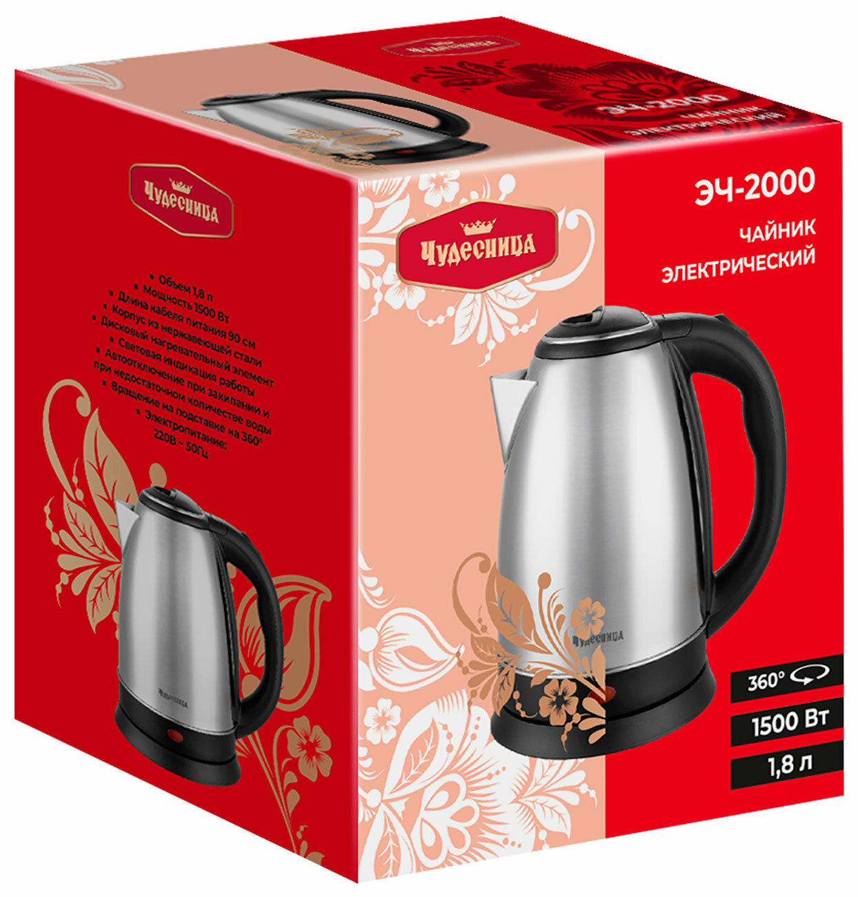 Электрический чайник Чудесница ЭЧ-2000, 1500 Вт, 1.8 л, стальной/черный информация: