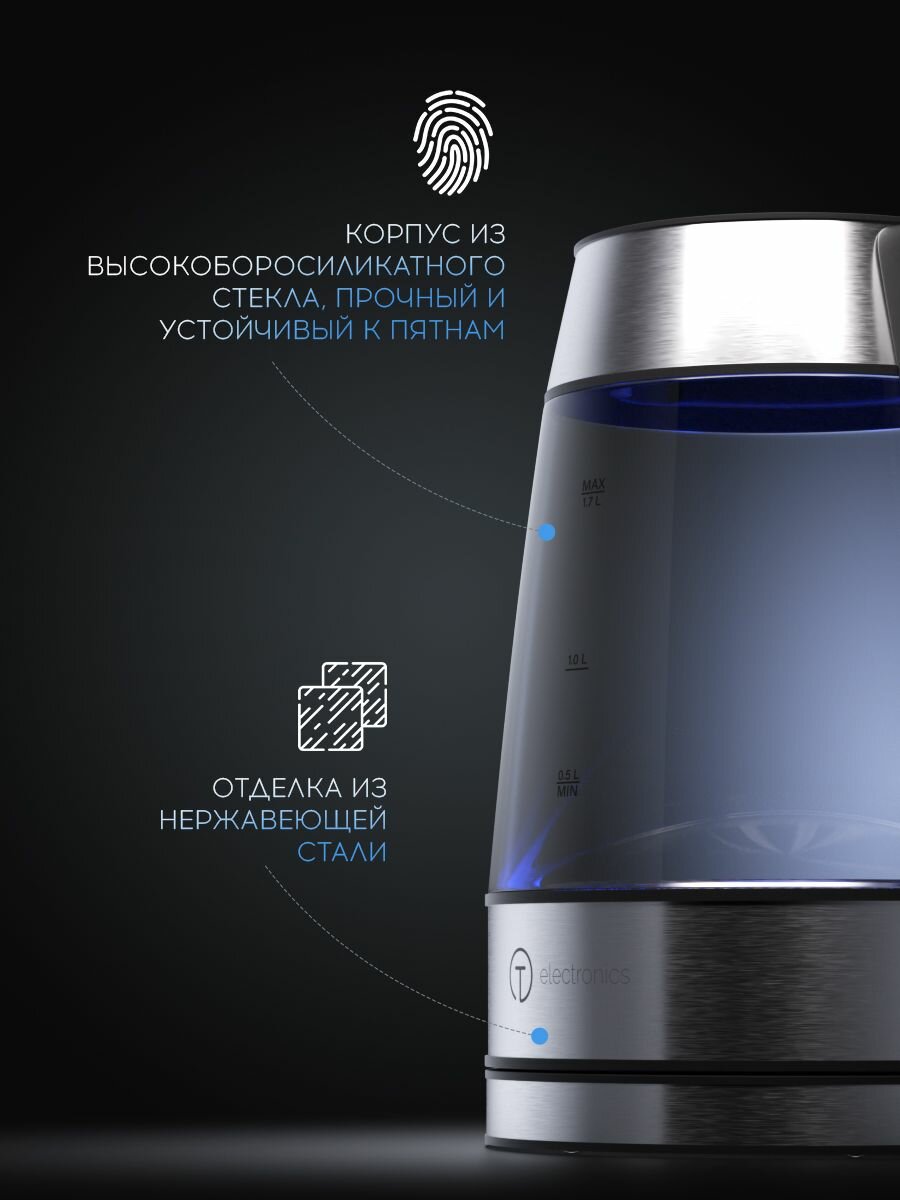 Чайник электрический стеклянный LEX LXK 30010-1, объем 1,2 л, подсветка.