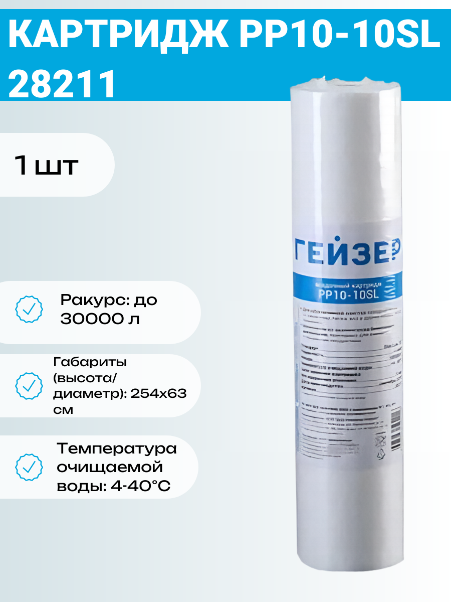 10 цен на Картридж Гейзер PP10-10SL, очистка воды от механических примесей