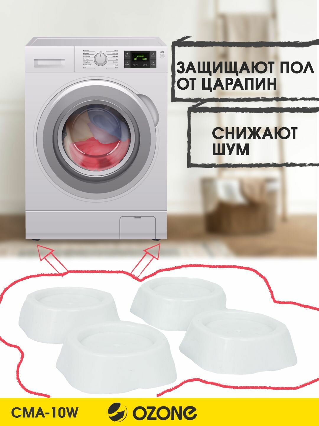 Антивибрационные подставки для стиральных машин и холодильников, 4 шт, цвет белый, бренд: OZONE, CMA-10W информация: