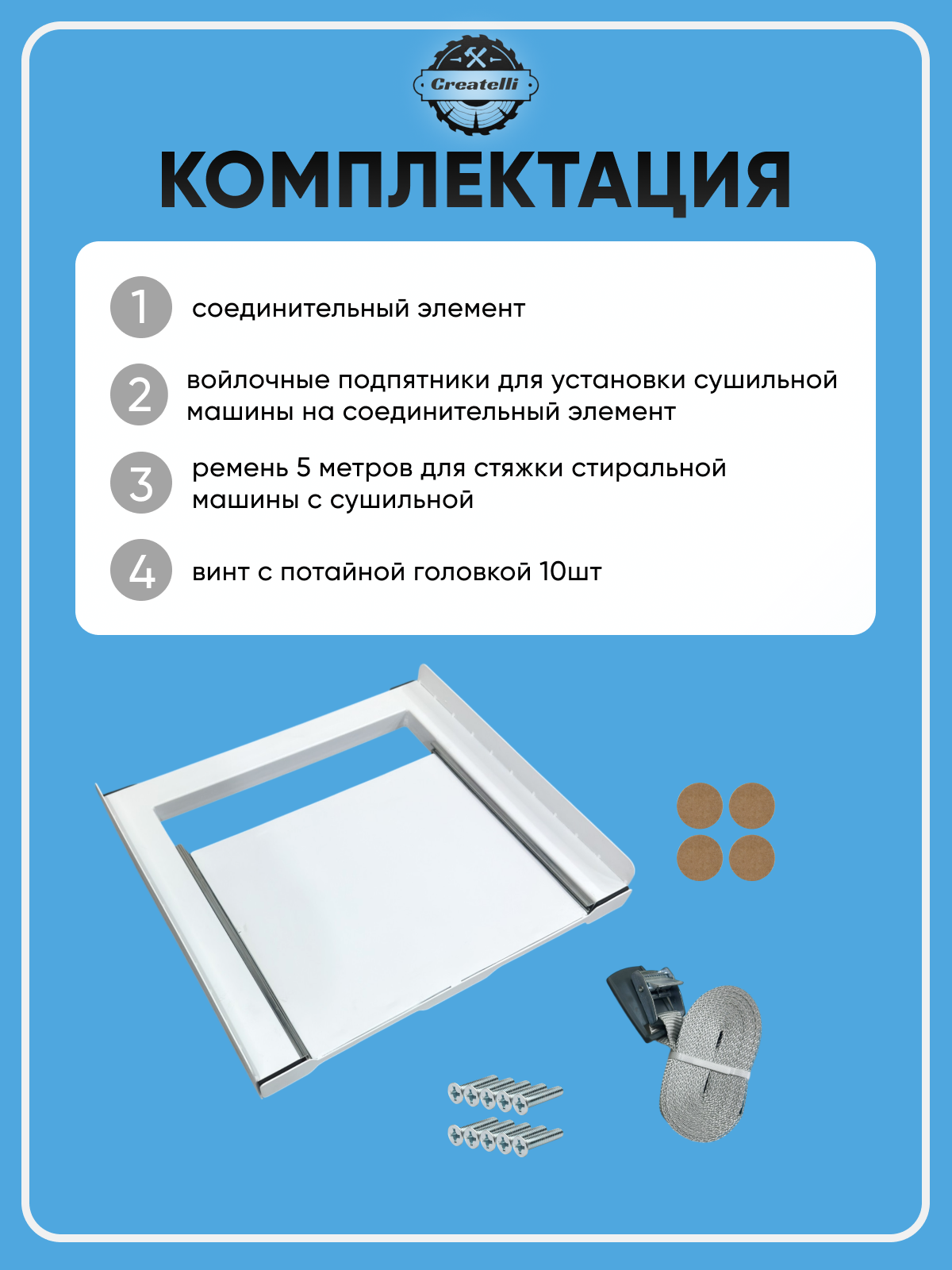 10 цен на Соединительный универсальный элемент для сушильной/стиральной машины с выдвижной полкой, белый (55*60см) Createlli