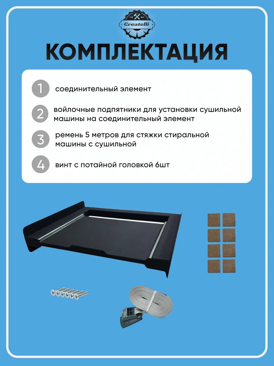 Соединительный универсальный элемент для сушильной/стиральной машины с выдвижной полкой, белый (60*60см) Createlli 9 760 ₽