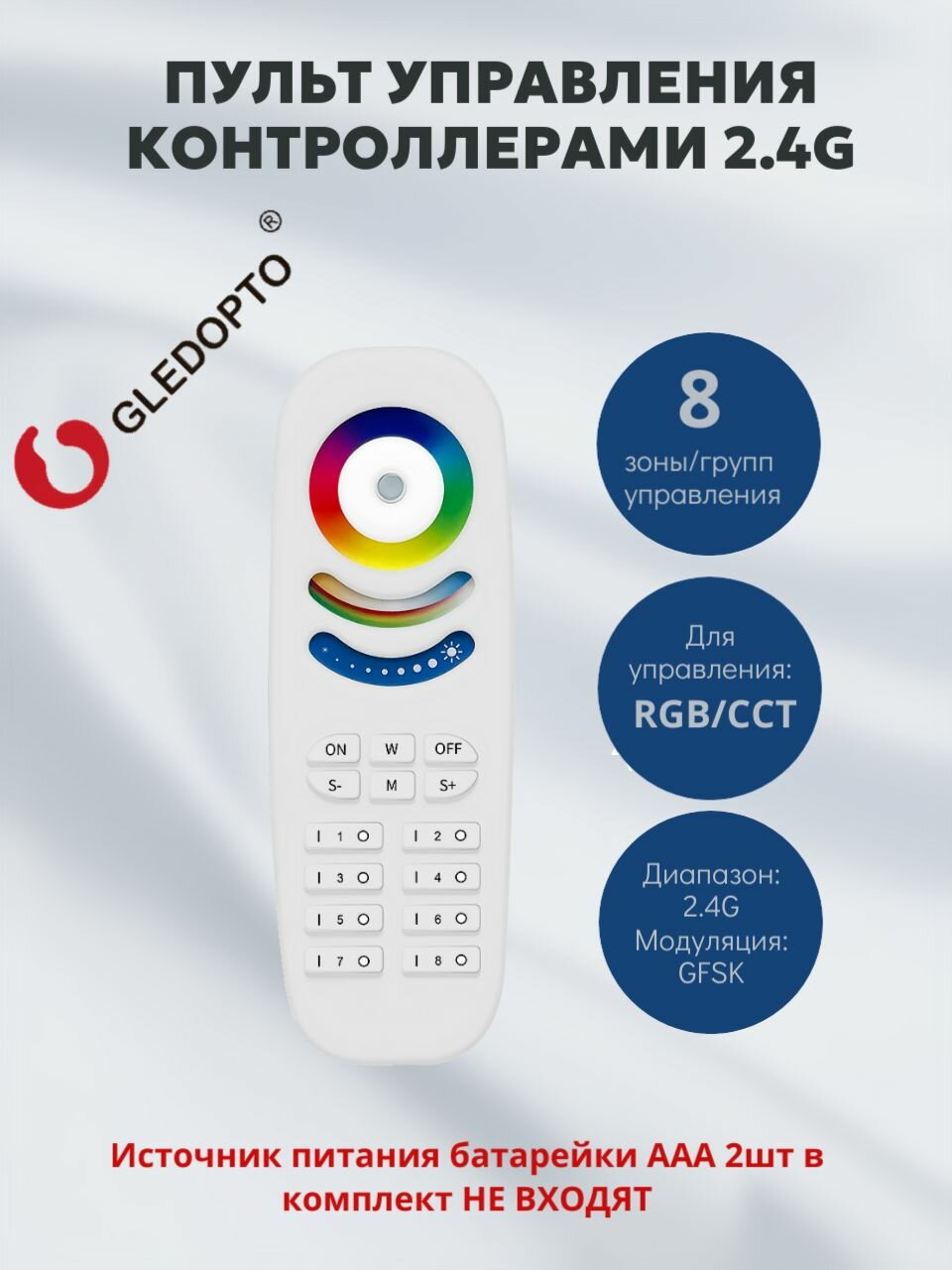 Пульт управления контроллерами освещения 8-зонный GLEDOPTO 2.4G RGB/CCT информация: