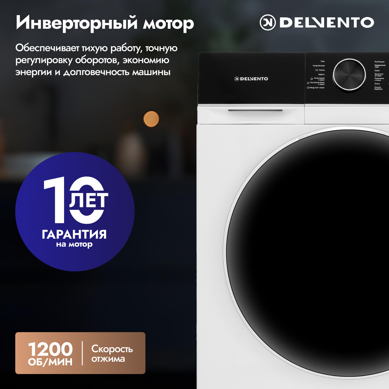 10 цен на Стиральная машина с сушкой DELVENTO VHS701 / 10,5 кг / сушка 6 кг. / прямой привод / инвертор /1200 об. мин / 14 программ / отложенный старт 24 ч. / гарантия 3 года