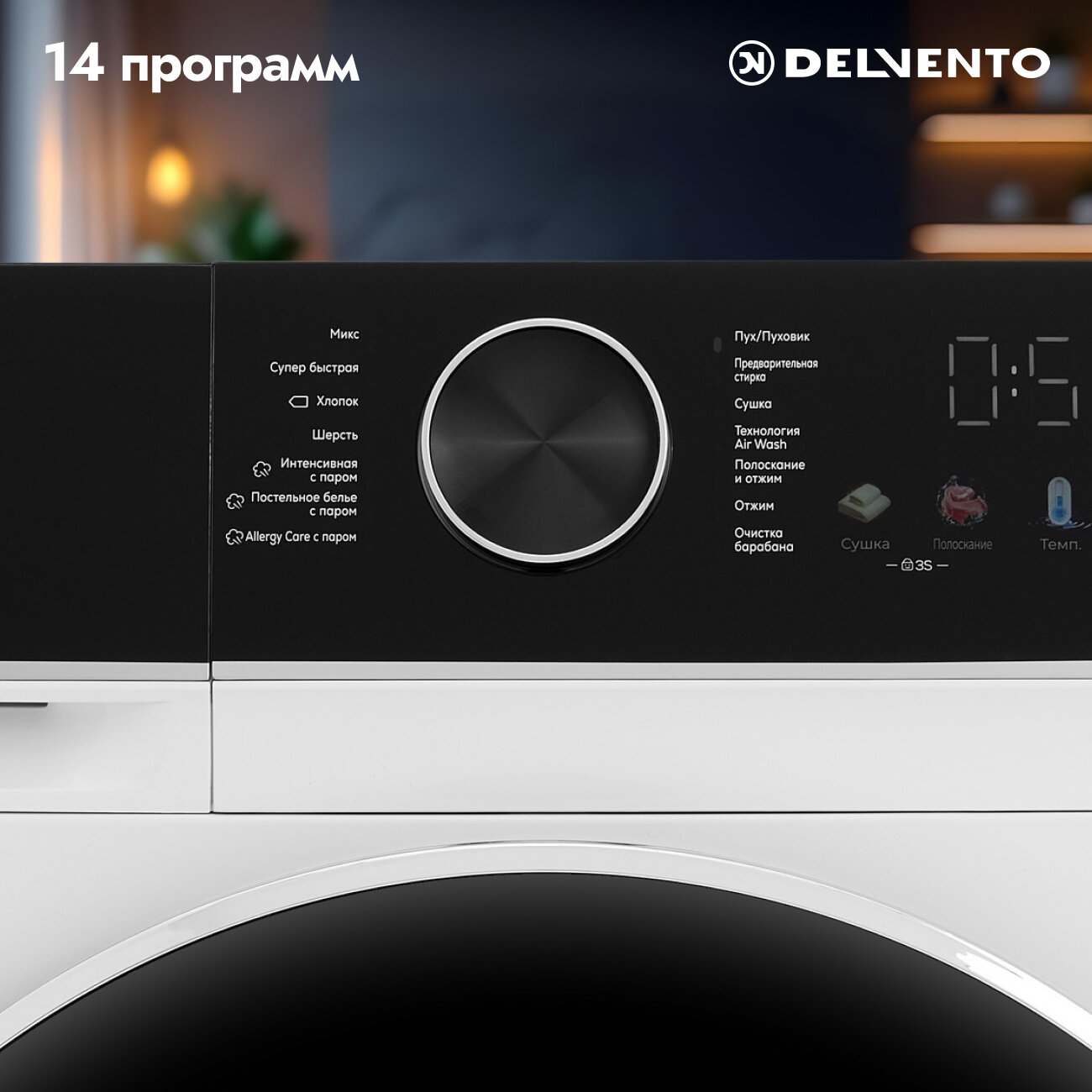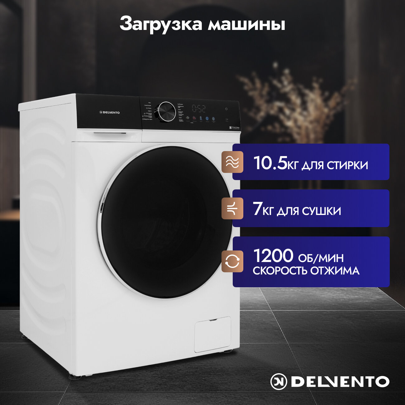 Стиральная машина с сушкой DELVENTO VHS701 / 10,5 кг / сушка 6 кг. / прямой привод / инвертор /1200 об. мин / 14 программ / отложенный старт 24 ч. / гарантия 3 года информация: