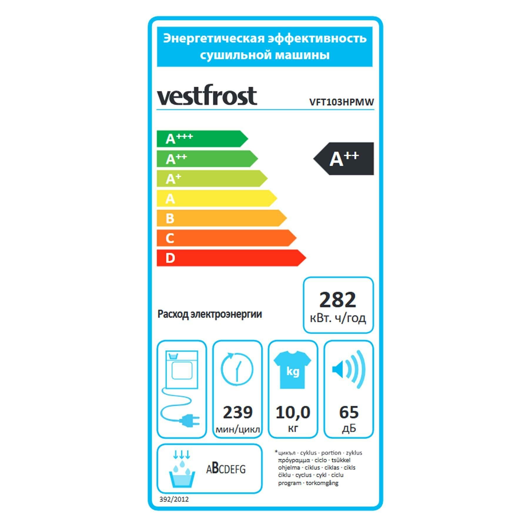 Сушильная машина Vestfrost VFT103HPMW, 10кг, A++, 65дБ, сенсорное управление информация: