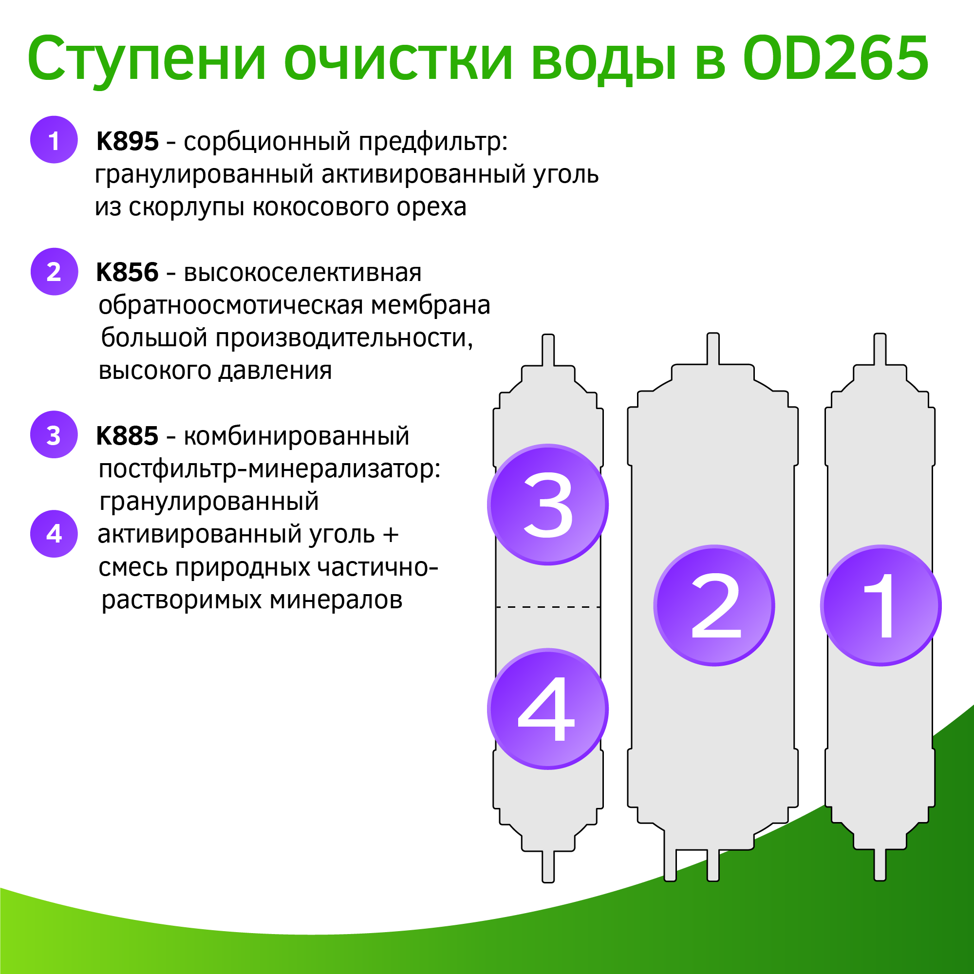 Фильтр для воды с обратным осмосом и минерализатором прямоточный Prio OD265, 4 ступени, суперкомпактный информация: