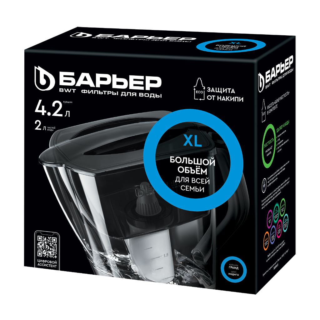 Фильтр-кувшин БАРЬЕР Гранд 4.2л индиго c кассетой "БАРЬЕР Жесткость" информация: