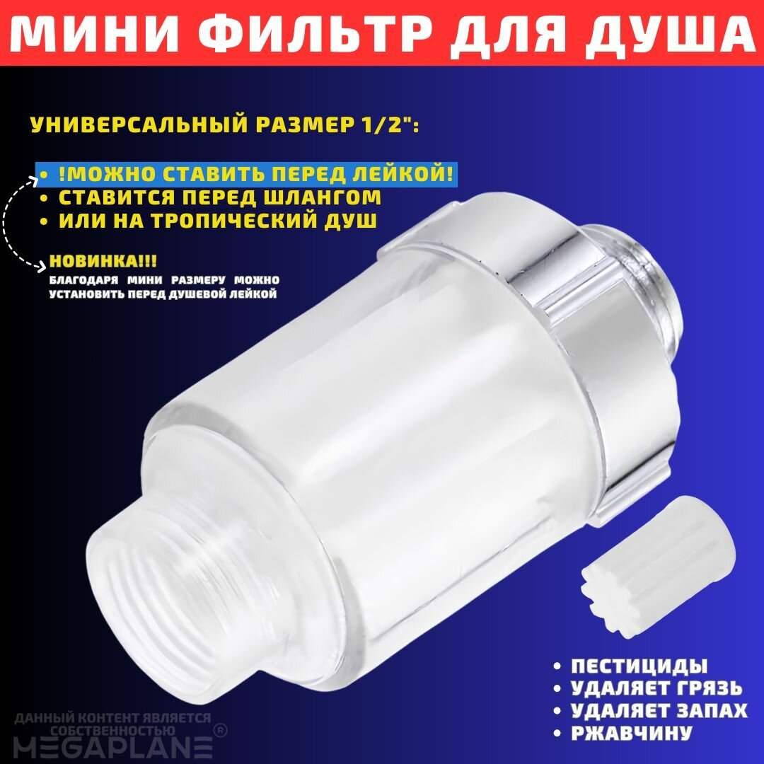 Мини фильтр для душа, смягчение воды, полипропиленовый картридж, прозрачный корпус информация: