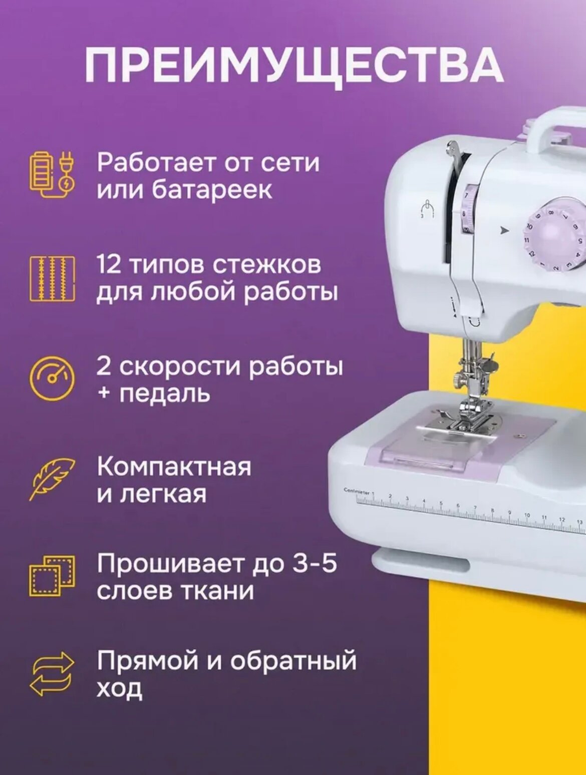 Швейная машинка ручная с педалью и подсветкой LED, портативная машинка, электрическая, бытовая, 12 видов строчек информация: