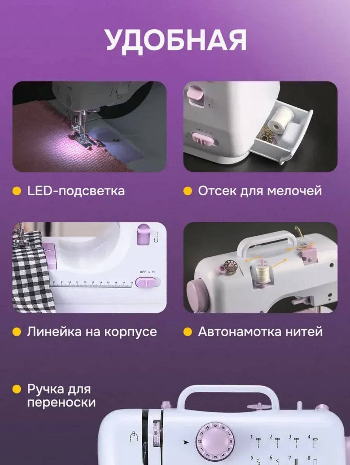 Характиристики этого товара не найдены!Отзывы на Швейная машинка ручная с педалью и подсветкой LED, портативная машинка, электрическая, бытовая, 12 видов строчек