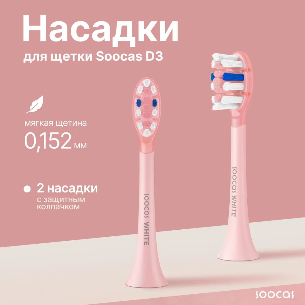 Сменные насадки Soocas, для зубной щетки D3, розовый, 2 штуки информация: