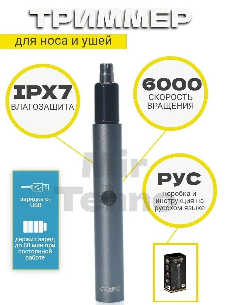Триммер для носа и ушей компактный дорожный триммер, серый информация: