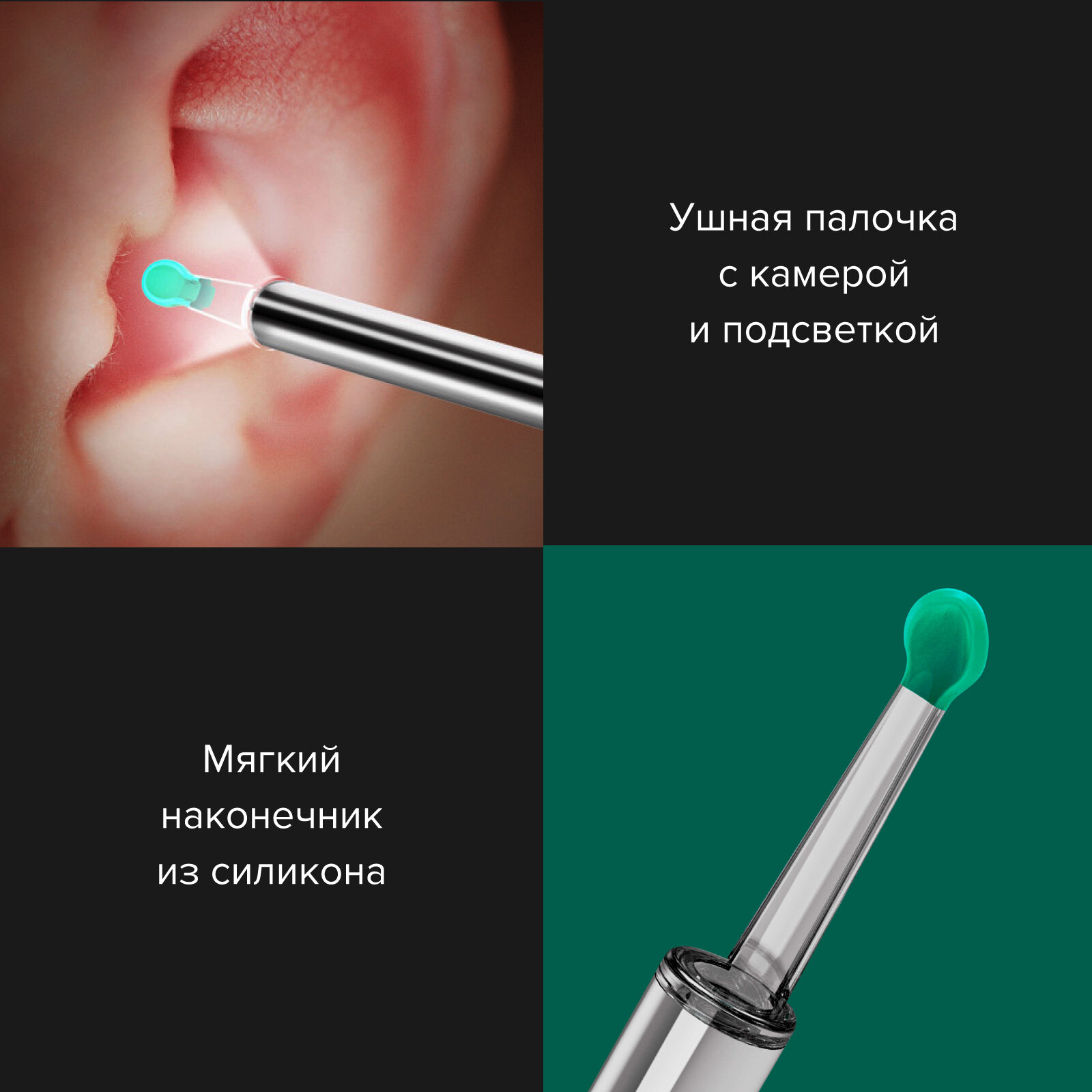 Отзывы на Умная палочка для чистки ушей с камерой Evo Beauty с силиконовыми насадками. Набор стальных палочке в подарок