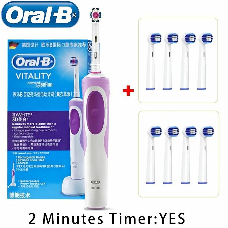 Oral B Электрическая зубная щетка D12 Vitality 8 шт щетками.(Пурпурный) информация: