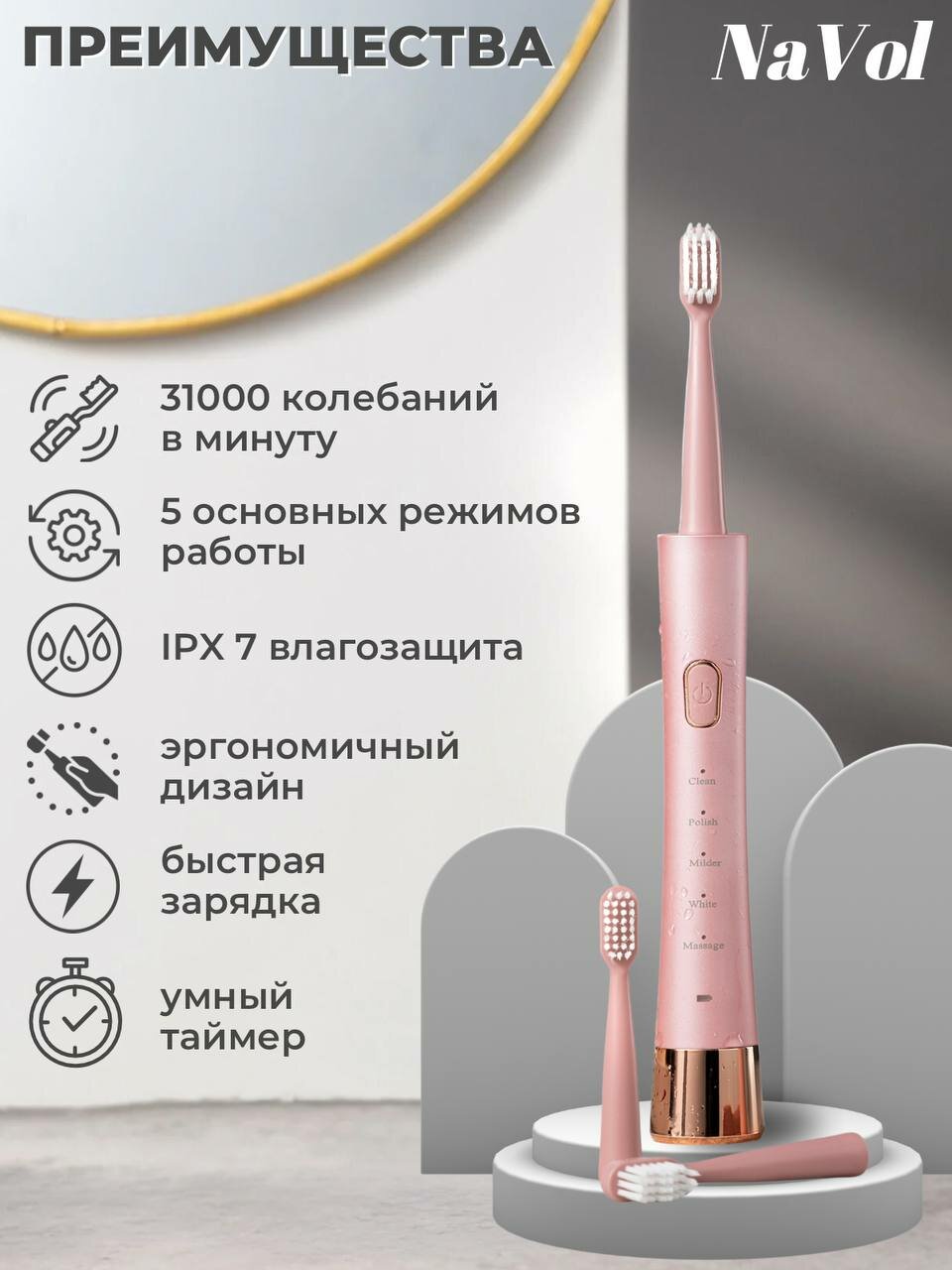 Электрическая зубная щетка звуковая взрослая детская 3 насадки 5 режимов информация: