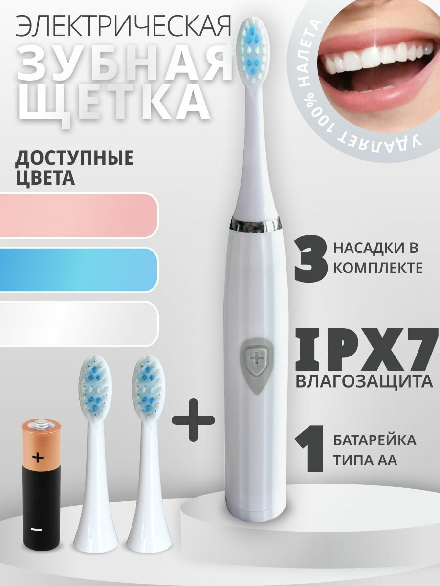 Электрическая зубная щетка с 3 насадками, белая информация: