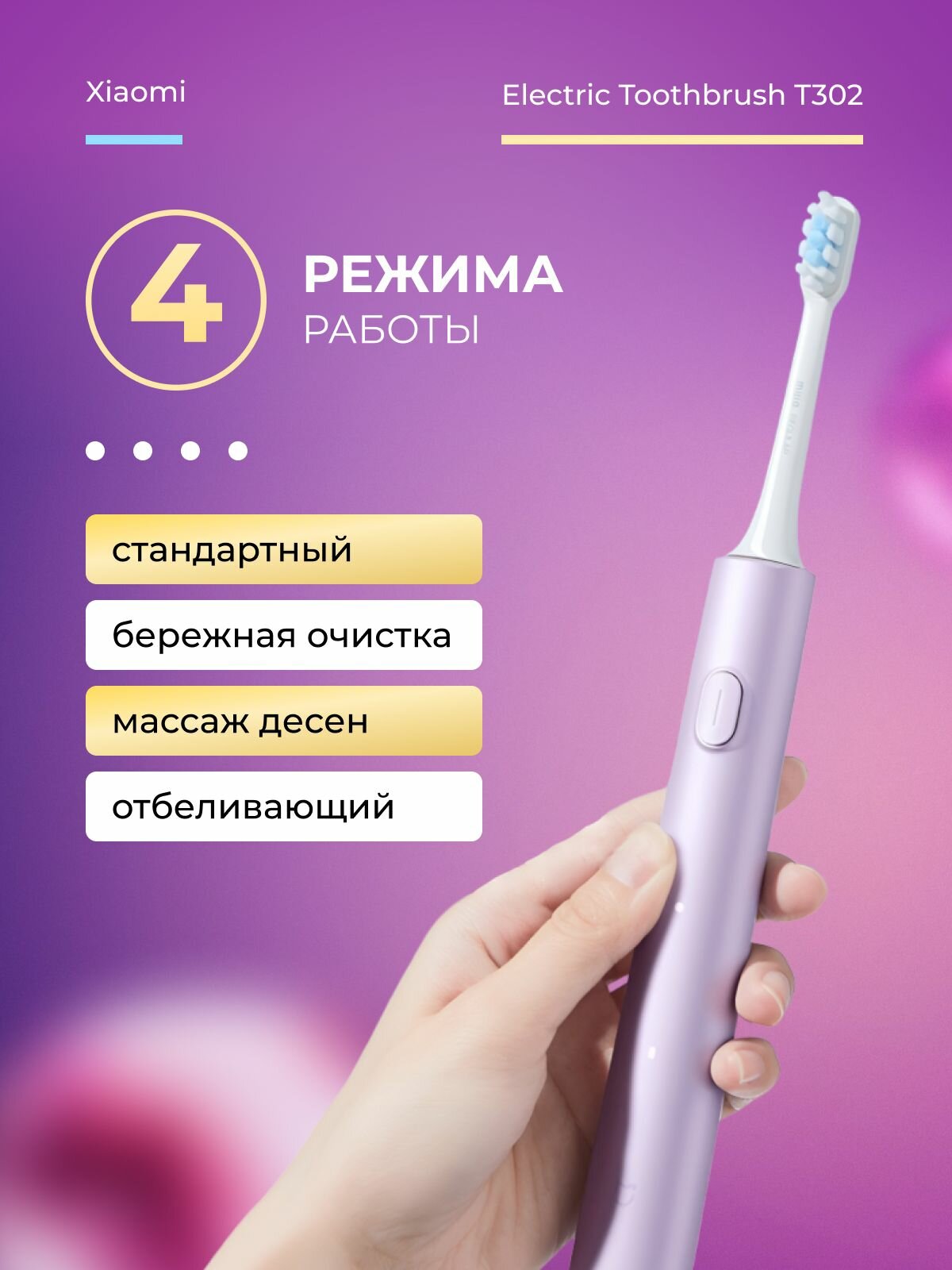 Электрическая зубная щетка Mijia T302, звуковая, 4 режима, LiIon, от аккумулятора, 150 г информация: