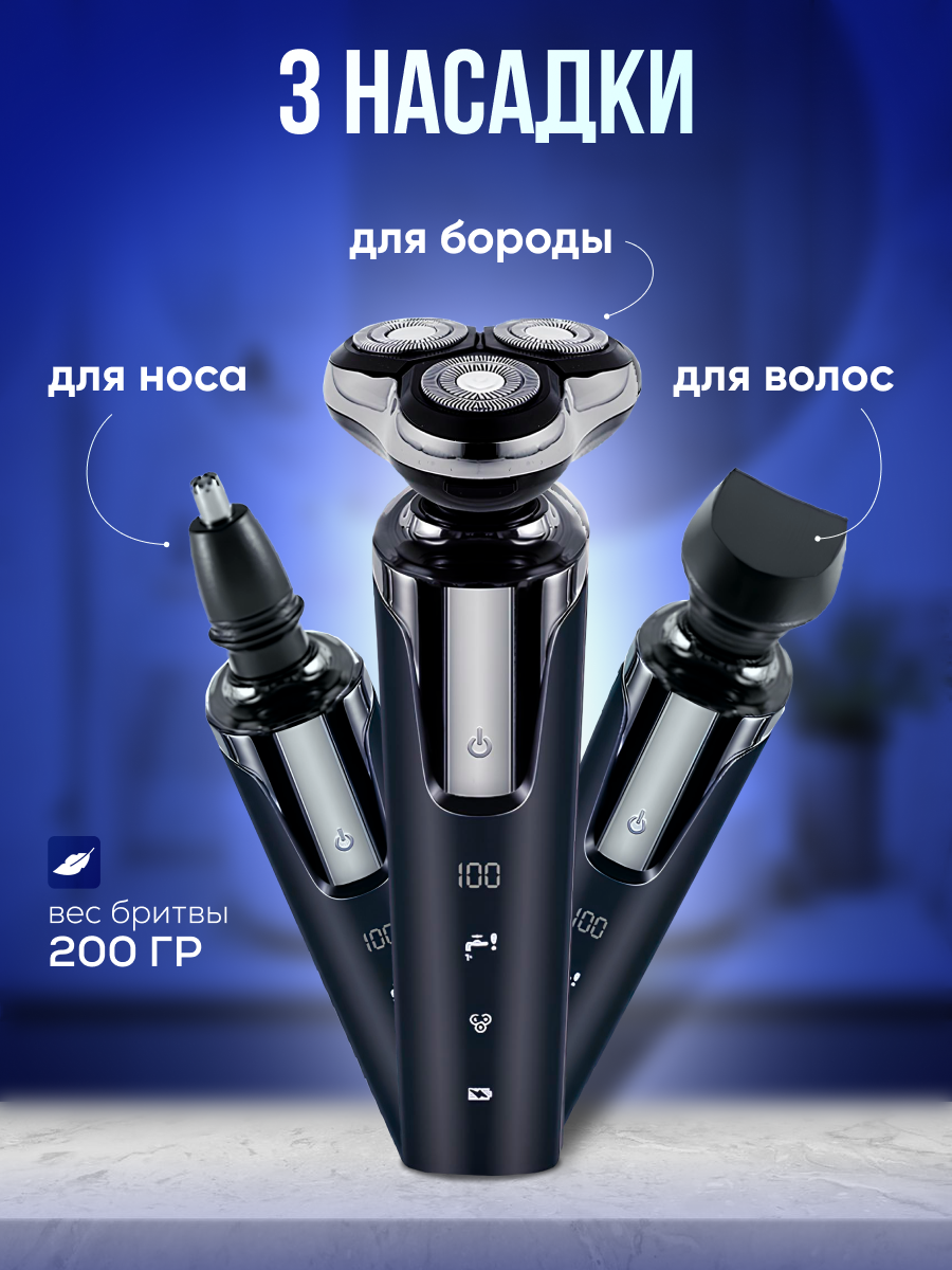 Электробритва CharmeN, для носа, бороды, волос, 3 плавающие головки, USB, IPX7 информация: