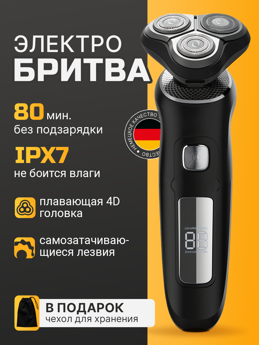Бритва для мужчин электрическая. Электробритва мужская, машинка для бритья, аккумуляторная, портативная информация: