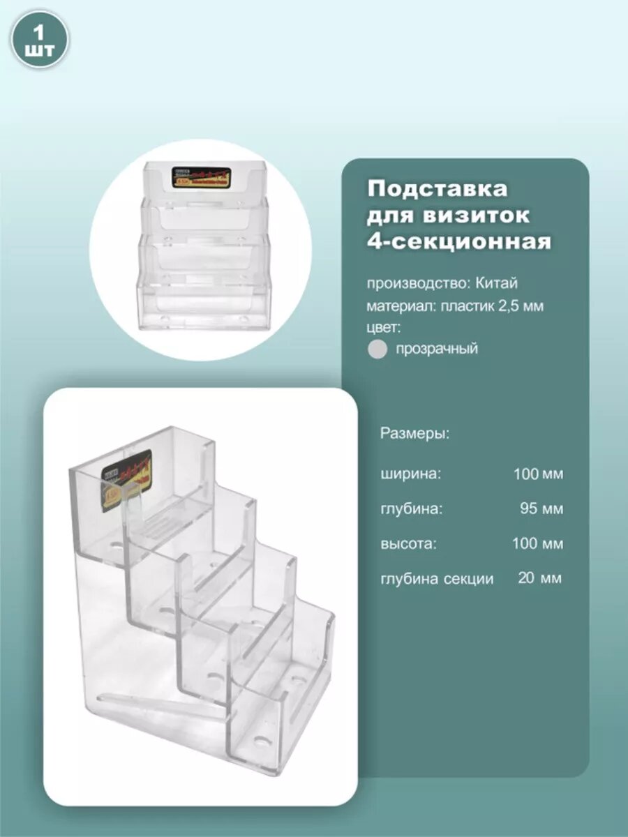 Подставка для визиток настольная, прозрачный, 1шт. информация: