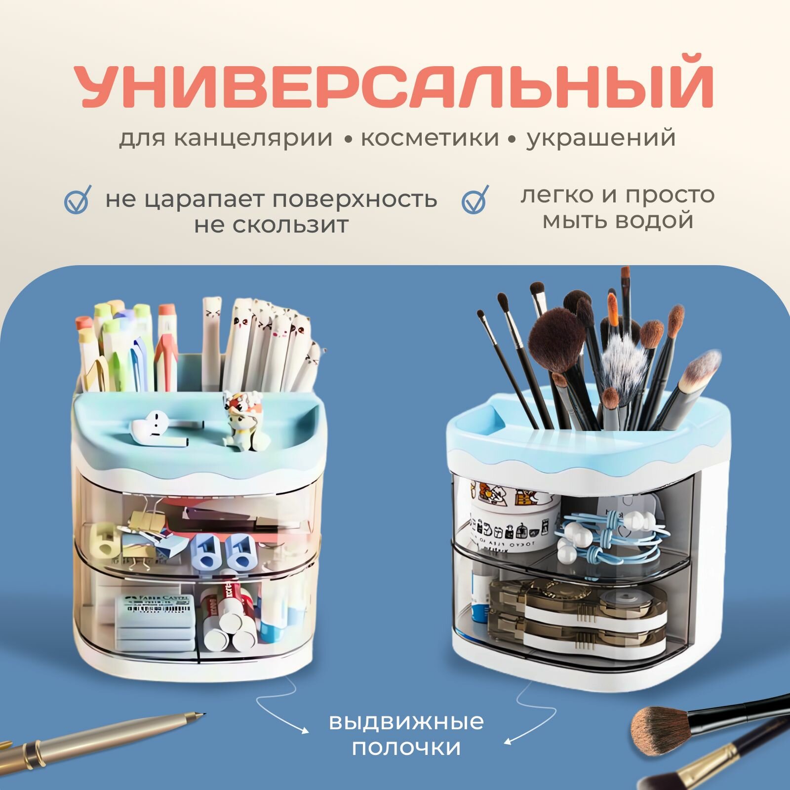 10 цен на Органайзер для канцелярии голубой