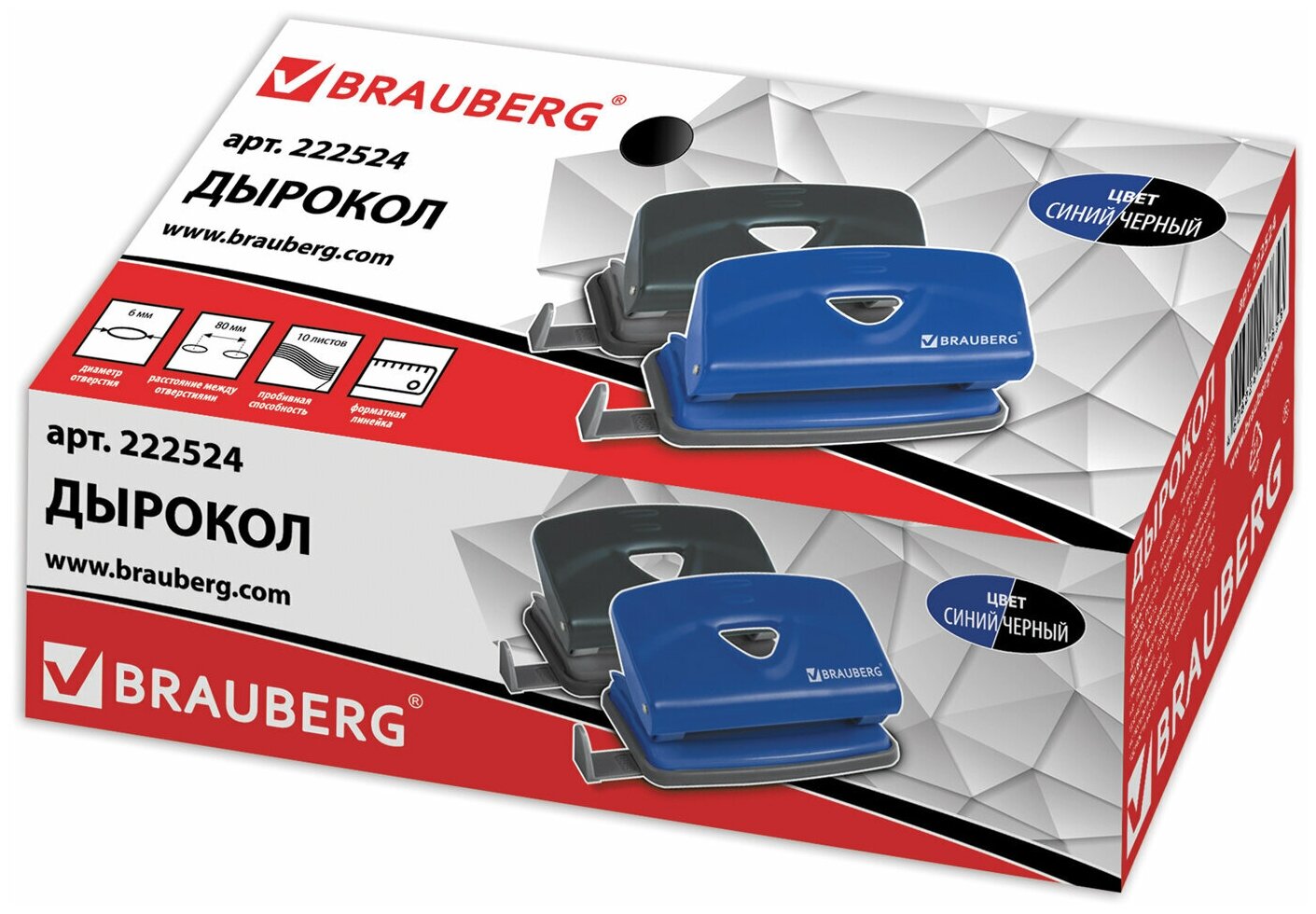 Дырокол металлический BRAUBERG "Universal+", до 10 листов, ассорти (синий /черный), комплект из 2 шт, 222524 информация: