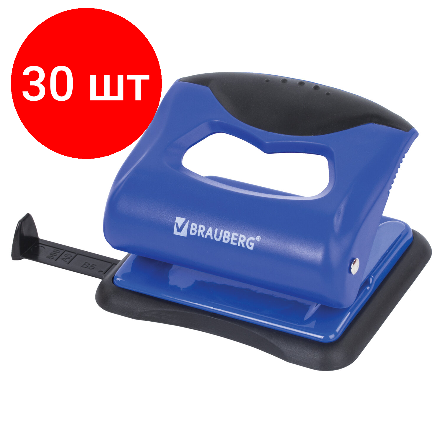 10 цен на Комплект 30 шт, Дырокол BRAUBERG "JET PRO", до 20 листов, сине-черный, 228598
