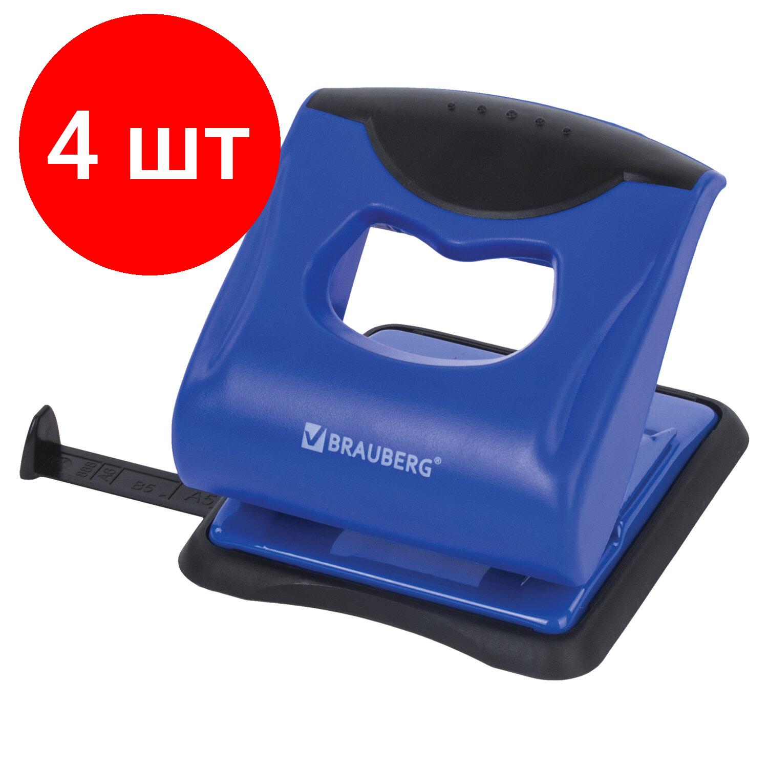 10 цен на Комплект 4 шт, Дырокол BRAUBERG "JET PRO", до 30 листов, сине-черный, 228600
