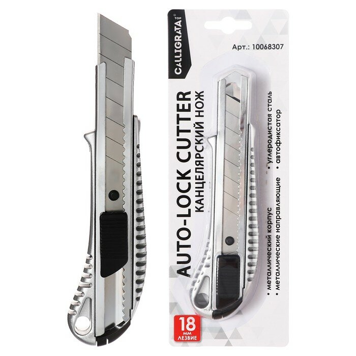 10 цен на Нож канцелярский 18мм, металлический, автофиксатор, Zinc-alloy, TOP, 10068307
