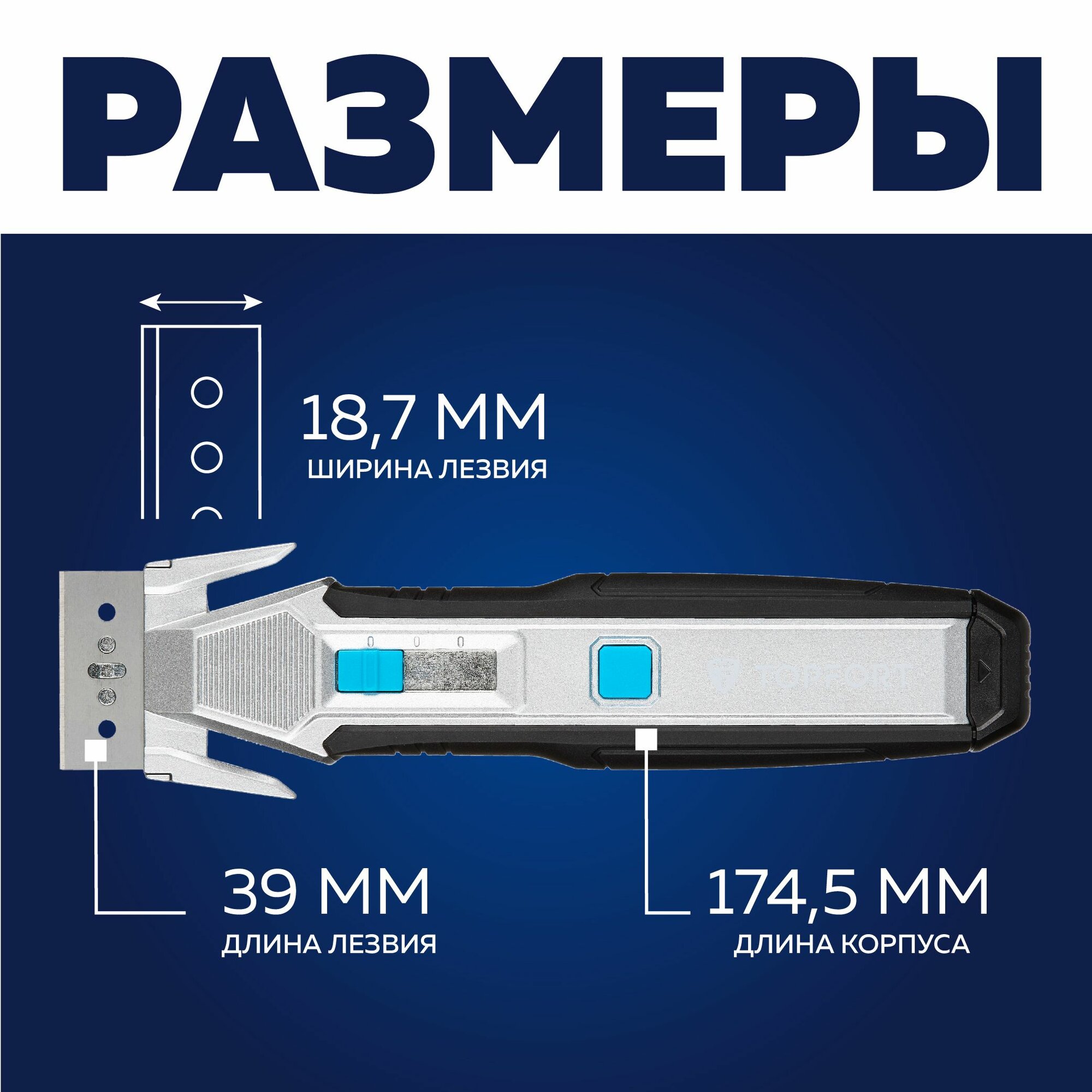 10 цен на Нож универсальный, TOPFORT, для вскрытия упаковки, ширина лезвия 18,7 мм + 3 запасных лезвия и скребок