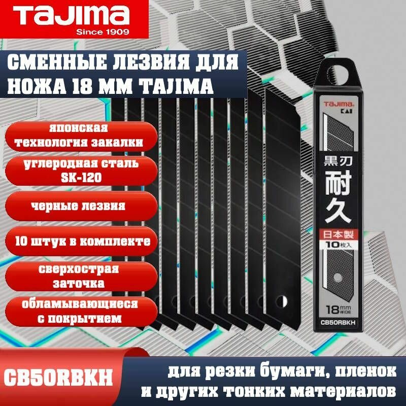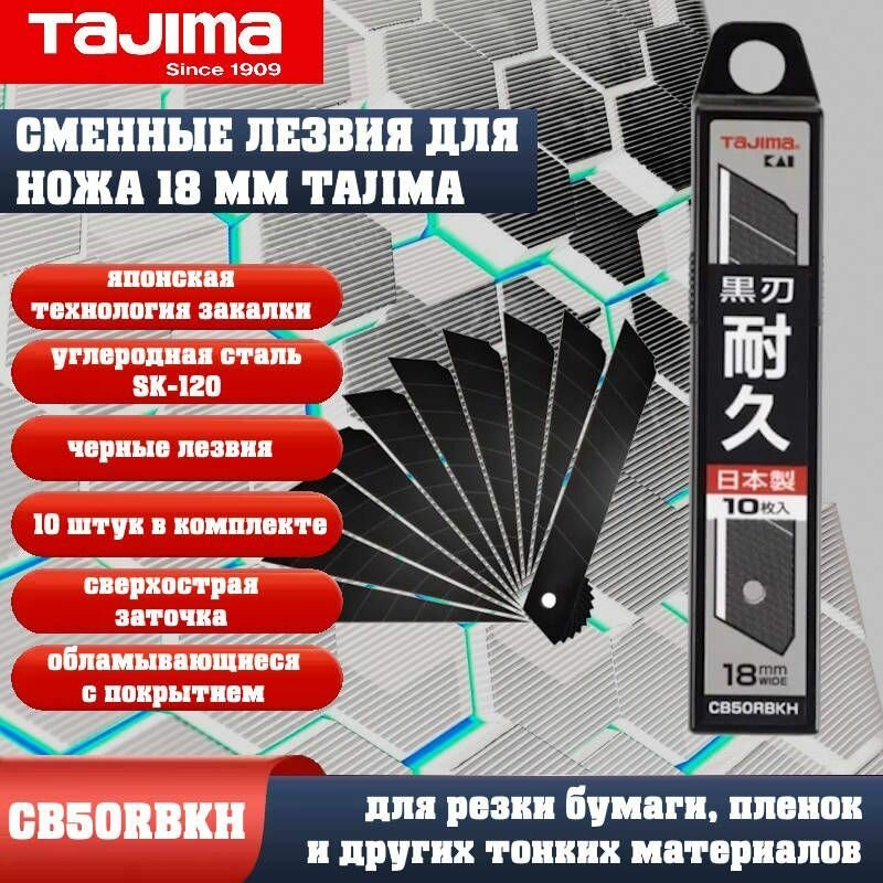 10 цен на Tajima - сменные лезвия для ножа, CB50RBKH сегментные черные 18мм, 10шт