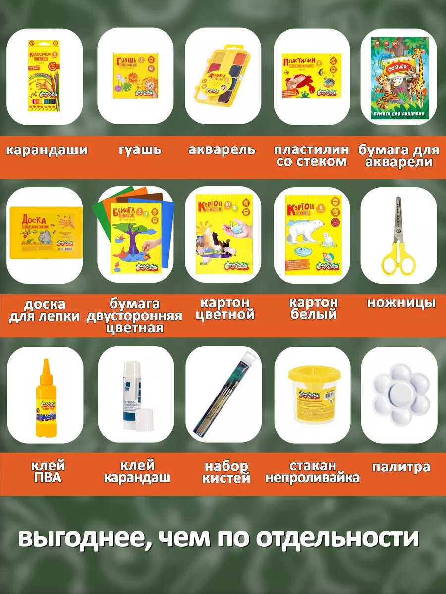 Отзывы на Канцелярский набор для ИЗО и труда "Учимся вместе", Каляка-Маляка , для школьников, 15 предметов
