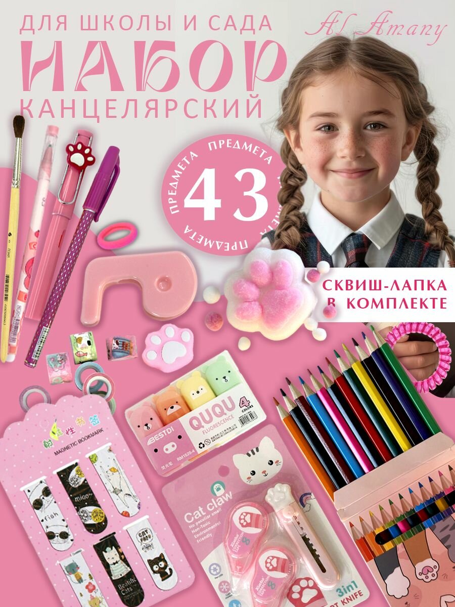 10 цен на Подарочный набор канцелярии для школы лапки 43 предмета, школьные принадлежности, подарок выпускнику и первокласснику