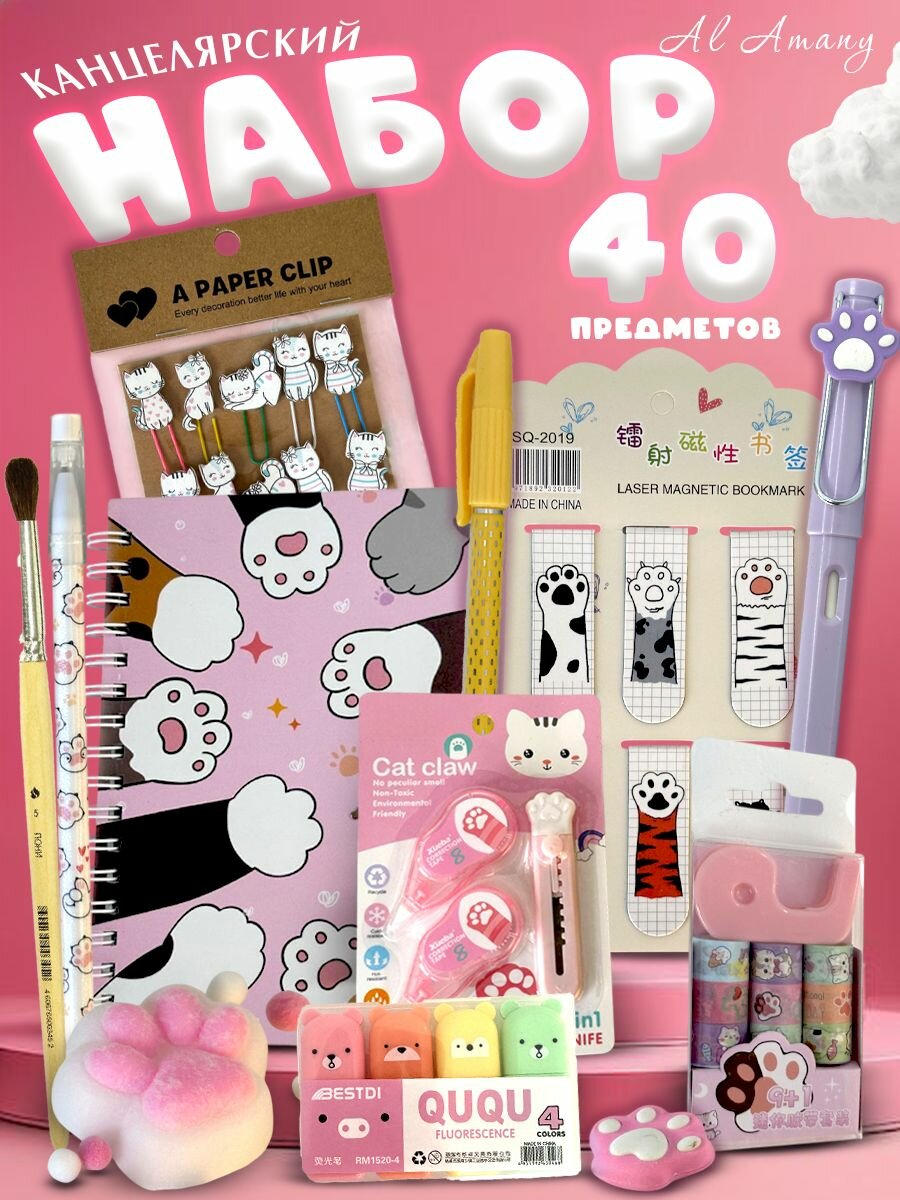 10 цен на Подарочный набор канцелярии для школы, лапки, 40 предметов, школьные принадлежности, подарок выпускнику детского сада и первокласснику