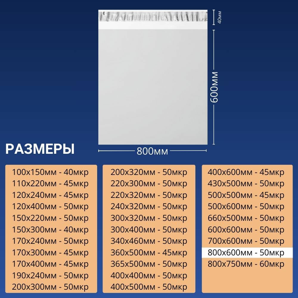 Курьерский почтовый сейф пакет непрозрачный 800x600 мм 80х60 см 50 мкм 50 шт информация: